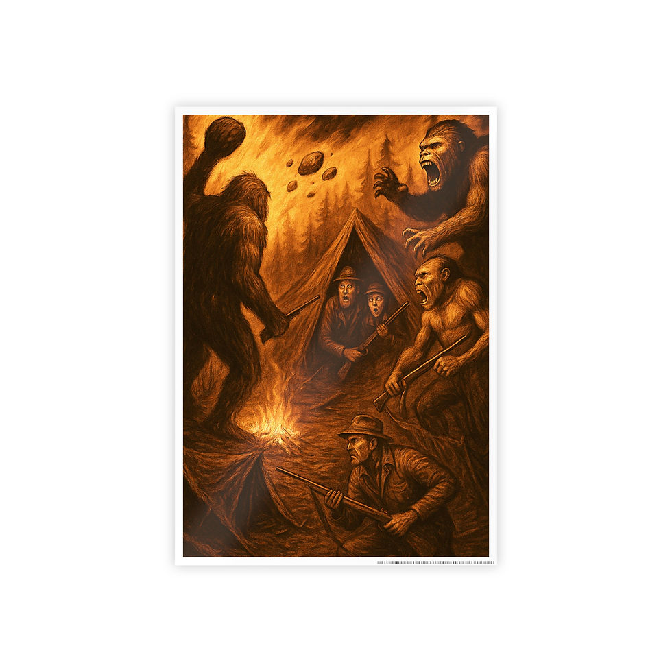 Bigfoot Campfire Scene Gloss Poster - Cryptid Adventure Wall Art